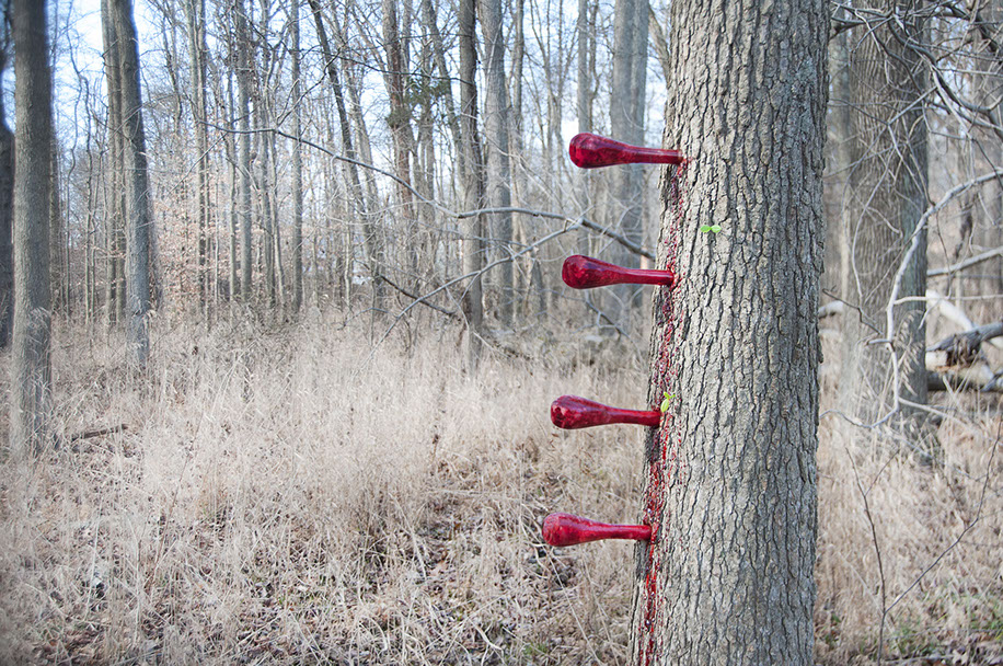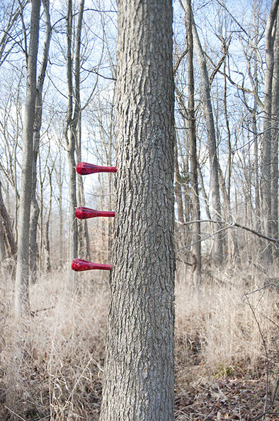 glass, steak and blood on tree