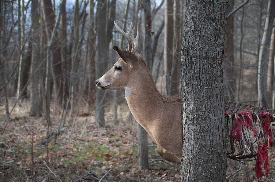 mounted buck, reclaimed deer carcass and steak