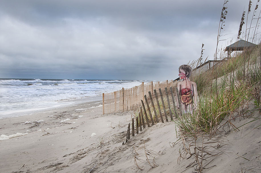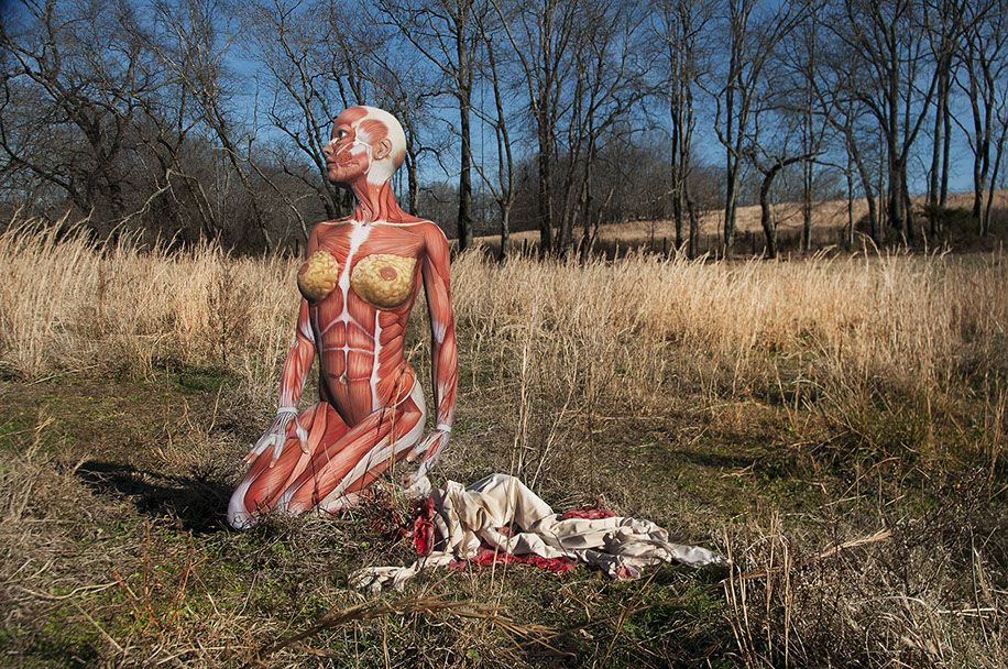 inkjets on masonite, spandex, steak and blood