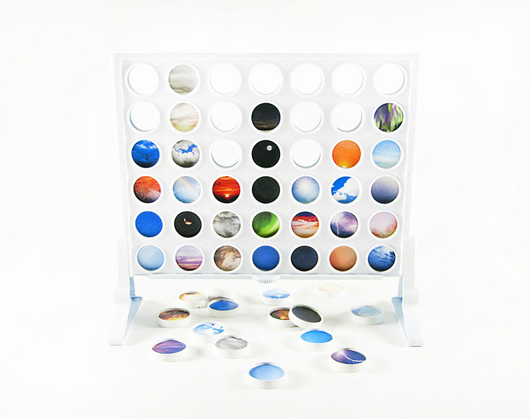 painted connect four with cut and pasted inkjet prints