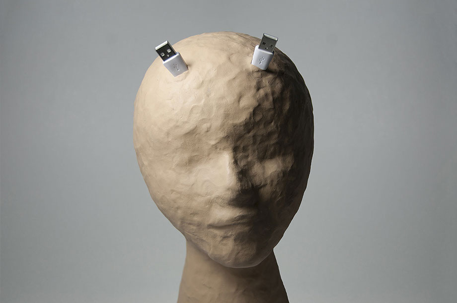 clay, styrofoam, plastic brain and usb