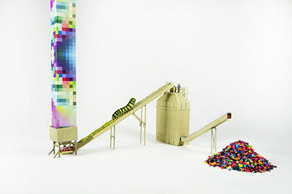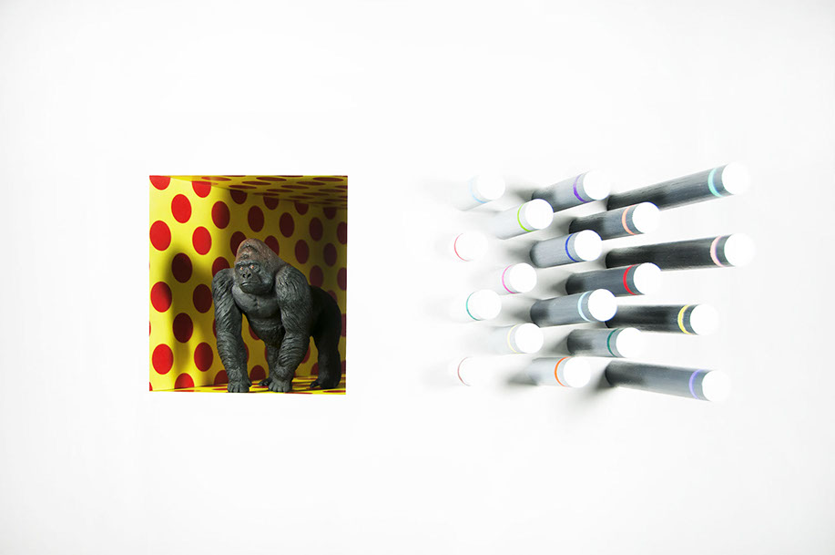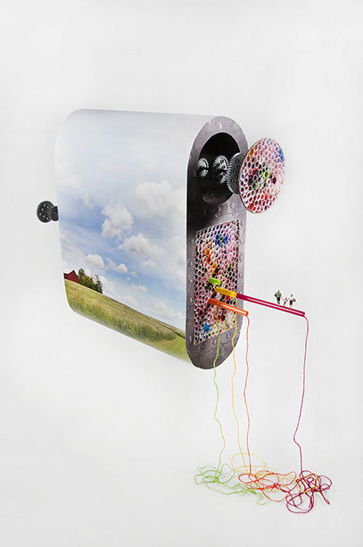 inkjet prints on foam core, gears, spray paint, minis, straws and string