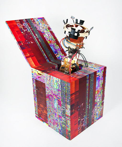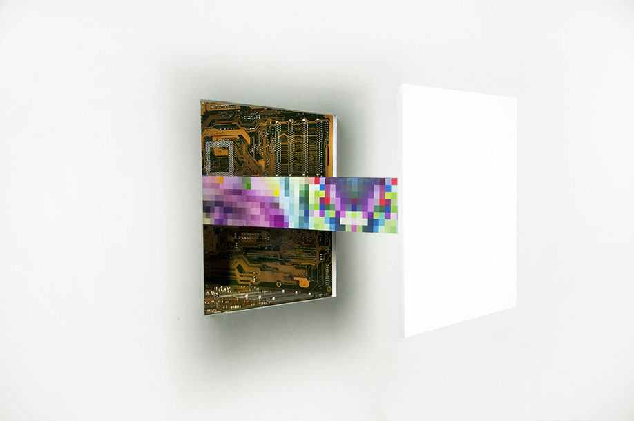 inkjets and mother boards mounted in foam core