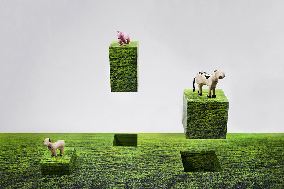 inkjets on foam core with wooden animals